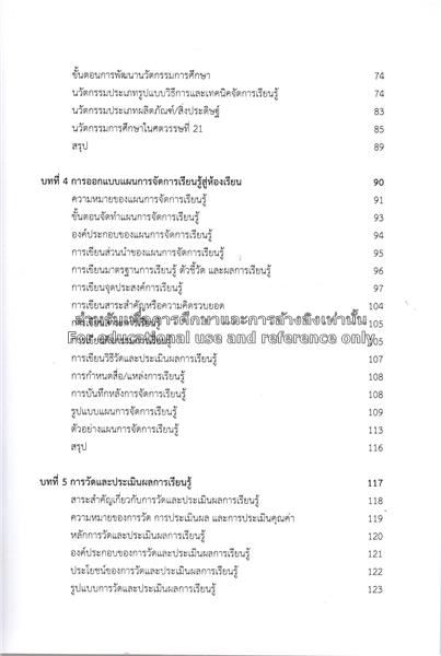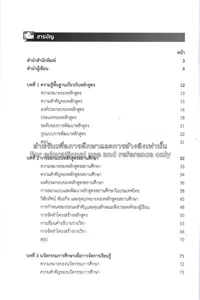 เรื่องย่อ :การออกแบบและพัฒนาหลักสูตรการเรียนการสอน เป็นกระบวนการสำคัญที่ช่วยยกระดับคุณภาพการศึกษาอย่างมีระบบ โดยผู้มีหน้าที่เกี่ยวข้องกับการสร้างองค์ประกอบของการเรียนการสอนจะต้องปรับปรุงหลักสูตรให้เหมาะสมกับบริบทสังคม เศรษฐกิจ และเทคโนโลยีที่เปลี่ยนแปลงเสมอ รวมถึงจำเป็นต้องพัฒนานวัตกรรมให้ทันสมัยเพื่อรองรับแนวคิดใหม่ เพื่อสร้างระบบการศึกษาที่ดีให้ตอบสนองความต้องการของสังคม หนังสือ “การออกแบบและพัฒนาหลักสูตร: จากทฤษฎีสู่การนำไปใช้” เหมาะอย่างยิ่งสำหรับผู้มีหน้าที่เกี่ยวข้องกับการปรับปรุงหลักสูตรการเรียนการสอน ซึ่งเนื้อหาประกอบด้วย 7 บท ได้แก่ ความรู้พื้นฐานเกี่ยวกับหลักสูตร การออกแบบหลักสูตรสถานศึกษา นวัตกรรมการศึกษาเพื่อจัดการเรียนรู้ การประเมินหลักสูตรและการนำหลักสูตรไปใช้ การวัดและประเมินผลการเรียนรู้ การประเมินหลักสูตรและการนำหลักสูตรไปใช้ และปฏิบัติการพัฒนาหลักสูตรสถานศึกษา พร้อมตัวอย่างเพื่อนำไปใช้ได้จริง.