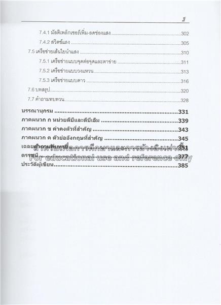 สาระสังเขป :หนังสือเล่มนี้เป็นทฤษฎีพื้นฐานและสมการสำคัญของทุกองค์ประกอบหลักในเครือข่ายเส้นใยนำแสง เรียบเรียงคำบรรยายให้กระชับอ่านเข้าใจง่าย ทุกบทแบ่งเป็นหัวข้อย่อยให้เลือกอ่านเฉพาะเจาะจงได้ แต่ละองค์ประกอบหลักมีรายละเอียดของชิ้นส่วนอุปกรณ์ที่สามารถเลือกใช้งานแทนกันได้ เกริ่นที่มา วิวัฒนาการ กระบวนการผลิต/ประกอบชิ้นส่วนต่างๆ อธิบายครอบคลุมหลากชนิด รวมทั้งเปรียบเทียบข้อดี-ข้อเสีย วาดรูปภาพประกอบให้เข้าใจชัดเจน ระบุอัตราบิตข้อมูลและชื่อโพรโทคอลตามมาตรฐานที่นิยมใช้งานลงตารางให้อ่านง่ายขึ้น สอดแทรกผลงานวิจัยและเทคโนโลยีล่าสุดพร้อมแหล่งอ้างอิงเขียนสมการของพารามิเตอร์สำคัญ อธิบายนิยามและแสดงตัวแปรต่างๆ อย่างครบครัน มีตัวอย่างโจทย์การคำนวณค่าพารามิเตอร์ รวมถึงเพิ่มคำถามทบทวนท้ายบทและแสดงเฉลยท้ายเล่ม